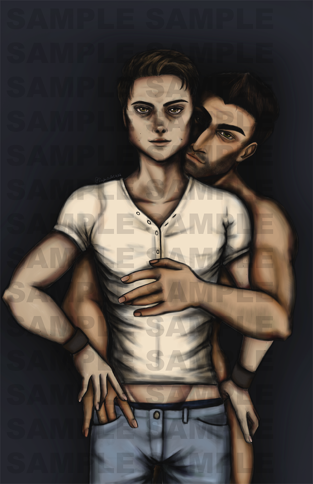 Image Description: Stiles and Derek from Teen Wolf (MTV series) are embracing, staring directly "into the camera" as if posed for a magazine spread.
