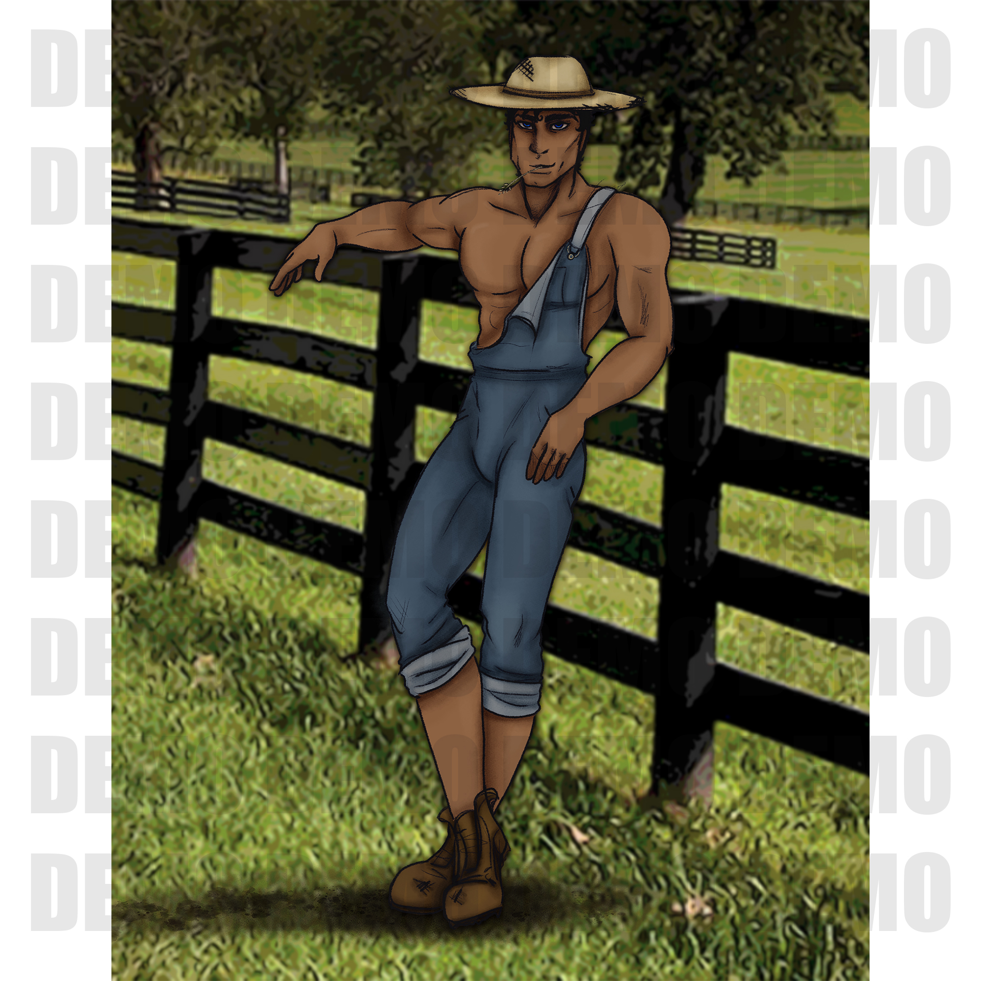 8.5x11 inch print on matte heavy cardstock depicting a pinup style Clark Kent in boots, overalls, and a straw hat - nothing else. This item is printed to order. This item ships for $1.